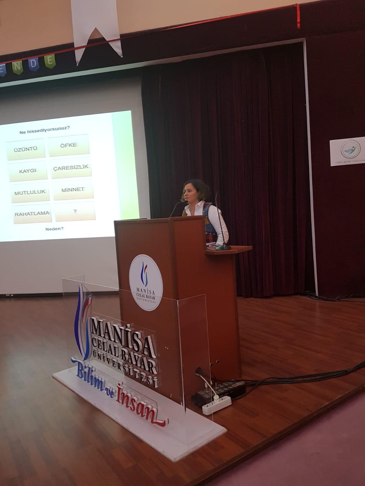 Ardından Türk Kızılayı İzmir Toplum Merkezi’nde görev yapan Sosyal Hizmet Uzmanı Mehtap NARMAN, merkezde verilen hizmetler hakkında bilgi vererek, öğrencilerin sorularını yanıtladı. Bir grup Sudanlı mültecinin, İkinci Sudan İç Savaşı’ndan kaçarken verdikleri hayat mücadelesini ve Amerika’nın Kansas şehrinde yeni bir hayat kurma çabalarını konu alan İyi Bir Yalan(The Good Lie) filminin gösterimi gerçekleştirildi. İzleyenlerin büyük beğenisini toplayan film gösteriminin ardından filmin Göç ve Sosyal Hizmet temelinde değerlendirmesi ve Atölye Çalışması, Sosyal Hizmet Uzmanı Rana DAYIOĞLU yönetiminde yapıldı.